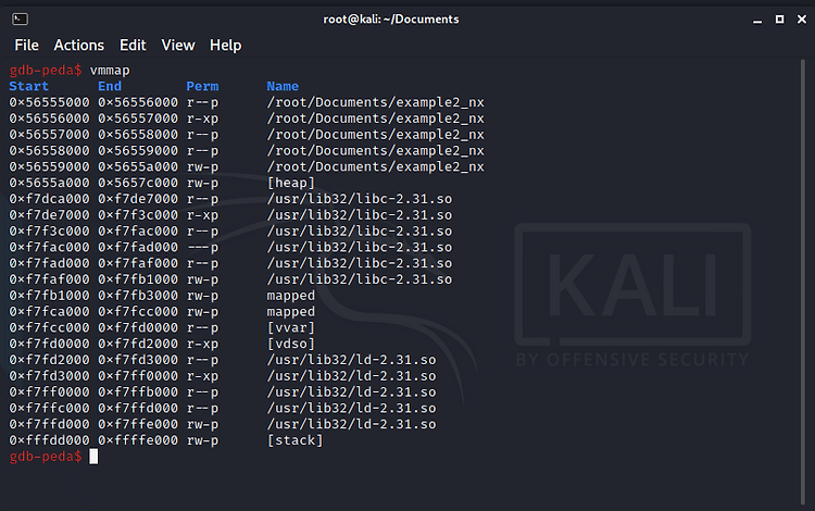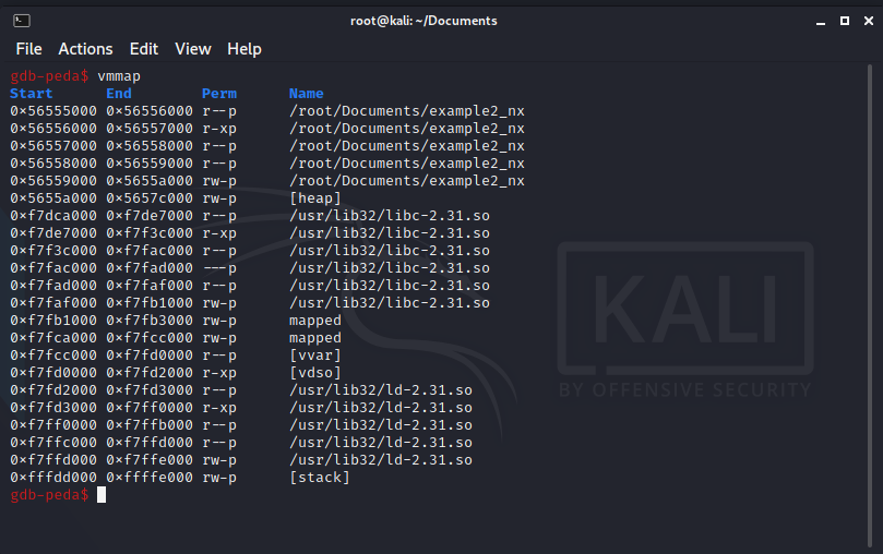 말보단 캡처 화면을 보여드리는 게 편할 것 같아, 데비안 환경의 리눅스에서 NX bit기법이 적용된 것을 보여드리겠습니다.