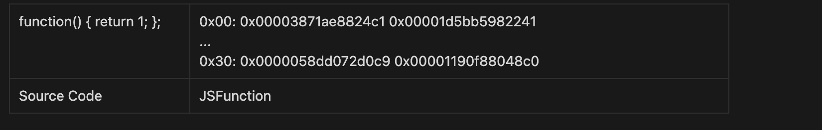 v8이 원시 코드를 해석하면 JSFucntion Object를 생성한다. 그 구조체는 위와 같고 이때 함수를 가르키는 포인터를 가지고 있기 떄문에 (여기서는 0x38 부분 ) 해당 페이지의 주소(RWX) 값을 볼 수 있다. 구할 수 있다.