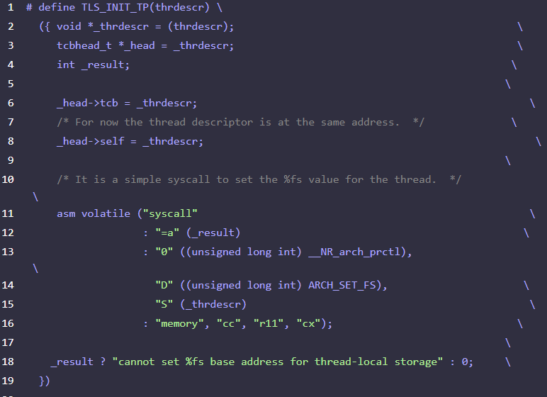 : 밑의 사진은 dl_allocate_tls_storage 에서 할당된 TLS영역을 FS로 초기화 하는 TLS_INIT_TP 매크로 코드이다.